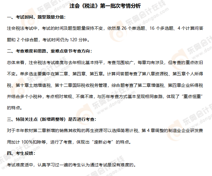注:以上注會(huì)稅法考試試題內(nèi)容由考生回憶反饋,東奧教研團(tuán)隊(duì)統(tǒng)計(jì),東奧會(huì)計(jì)在線(xiàn)整理發(fā)布