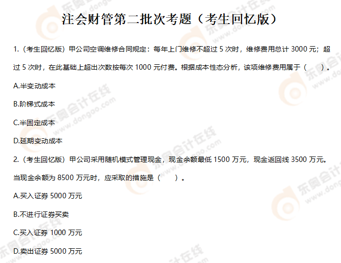 注:以上注冊(cè)會(huì)計(jì)師考試試題內(nèi)容由考生回憶反饋,東奧教研團(tuán)隊(duì)統(tǒng)計(jì),東奧會(huì)計(jì)在線整理發(fā)布