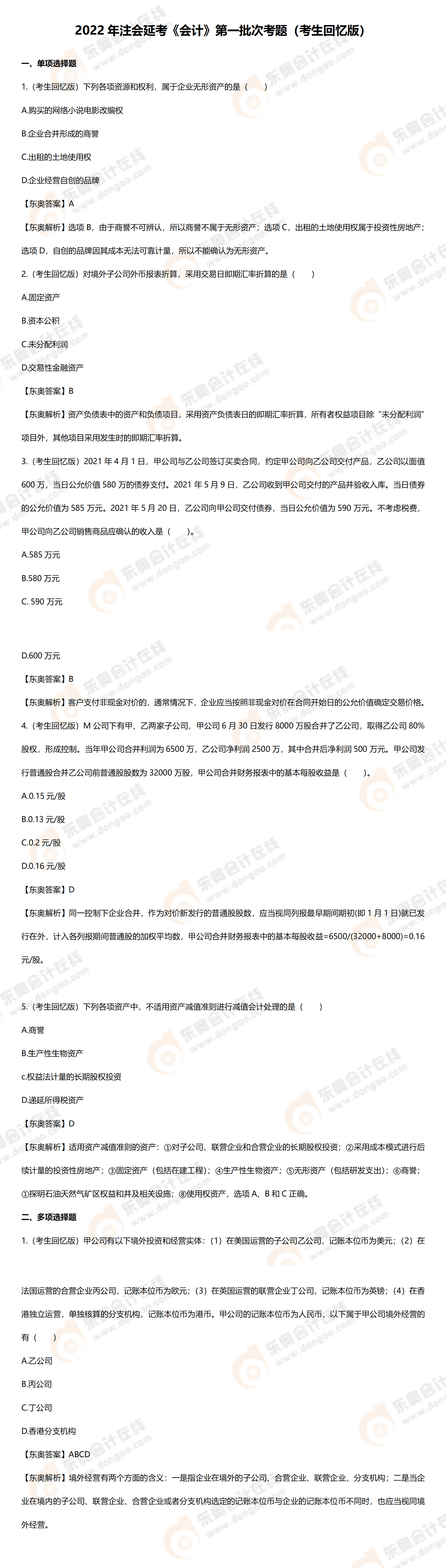 注:以上注冊(cè)會(huì)計(jì)師考試試題內(nèi)容由考生回憶反饋,東奧教研團(tuán)隊(duì)統(tǒng)計(jì),東奧會(huì)計(jì)在線整理發(fā)布