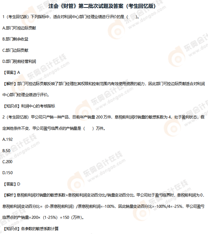更多考題:2023年注會考試考題及答案解析匯總(考生回憶版)