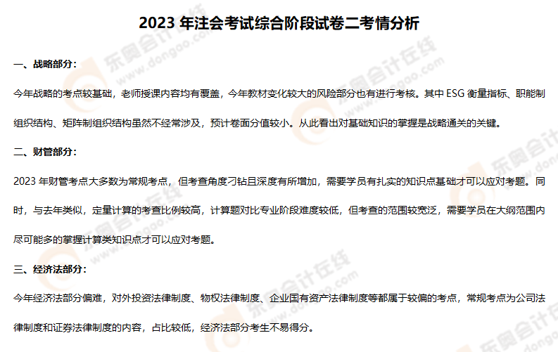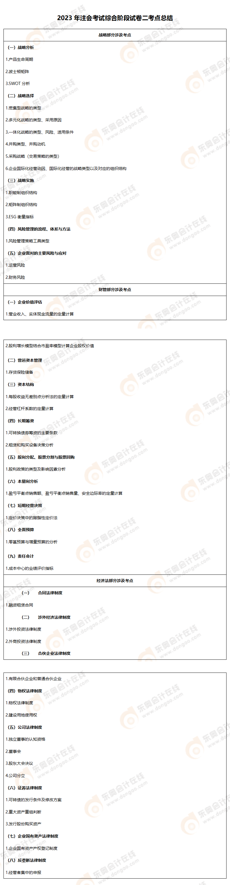 2023年注會(huì)綜合階段試卷二考情考點(diǎn)總結(jié)