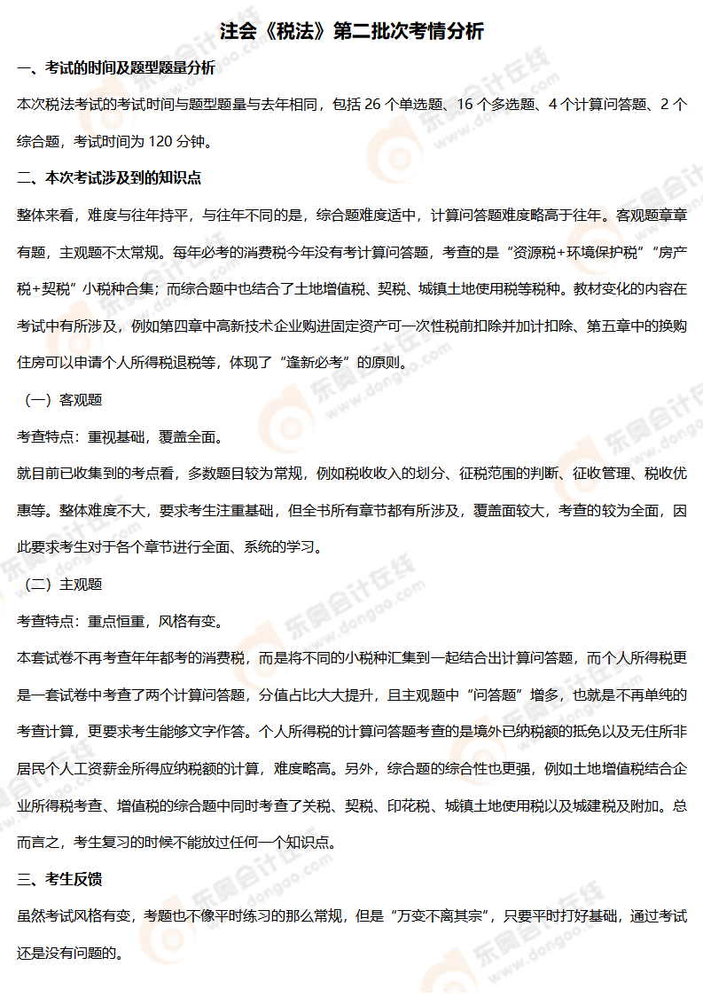 注:以上注會(huì)稅法考試試題內(nèi)容由考生回憶反饋,東奧教研團(tuán)隊(duì)統(tǒng)計(jì),東奧會(huì)計(jì)在線整理發(fā)布