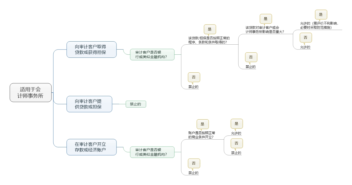 (2)從不屬于銀行或類似金融機構(gòu)的審計客戶,取得貸款或擔(dān)保。