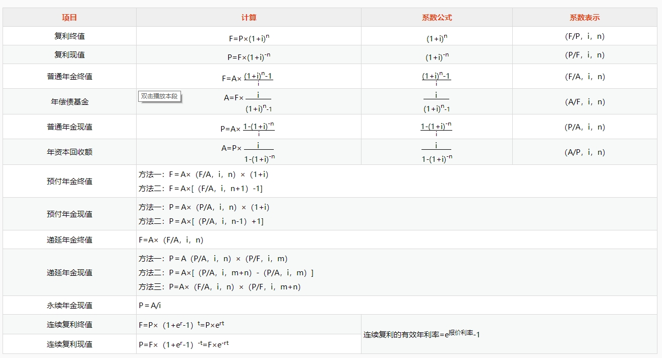 年金類別 | (1)普通年金:又稱后付年金,是從現(xiàn)在開始,每期期末收款、付款的年金 (2)預(yù)付年金:又稱即付年金或先付年金,是從現(xiàn)在開始,每期期初收款、付款的年金。它和同期普通年金的區(qū)別在于整體前移一期 (3)遞延年金:在第二期或第二期以后收付的年金 (4)永續(xù)年金:永續(xù)年金是普通年金的極限形式,當(dāng)普通年金的收付次數(shù)為無窮大時即為永續(xù)年金 |