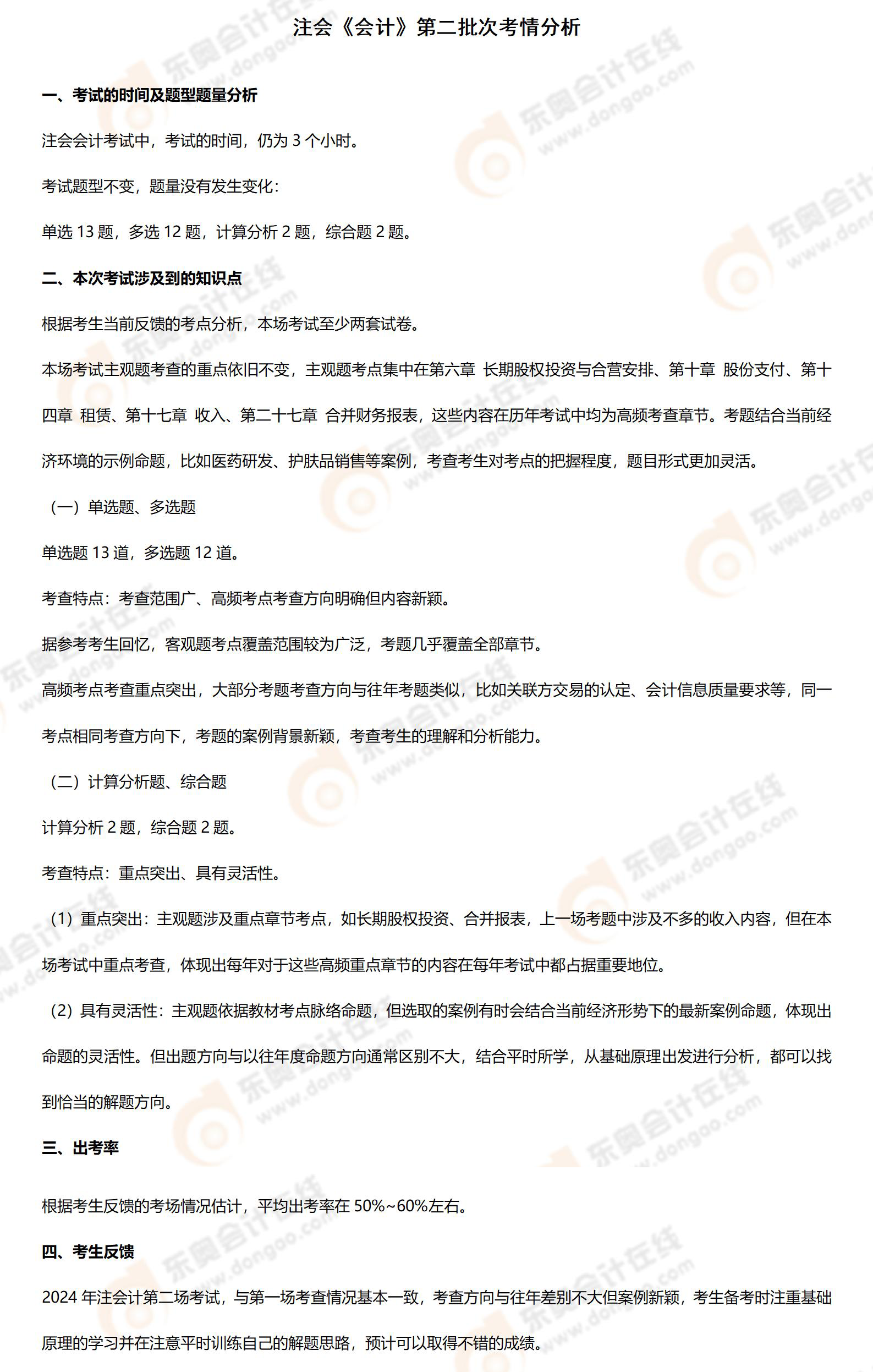 2024年注會(huì)會(huì)計(jì)第二批次考情分析及考點(diǎn)總結(jié)(考生回憶版)