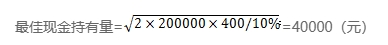 已知:某公司現(xiàn)金收支平衡,預(yù)計(jì)全年現(xiàn)金需要量為200000元,現(xiàn)金與有價(jià)證券的轉(zhuǎn)換成本為每次400元,有價(jià)證券年利率為10%。一年按360天計(jì)算。
