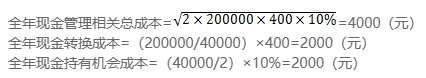 (2)計(jì)算最佳現(xiàn)金持有量下的全年現(xiàn)金相關(guān)總成本、全年現(xiàn)金轉(zhuǎn)換成本和全年現(xiàn)金持有機(jī)會(huì)成本。