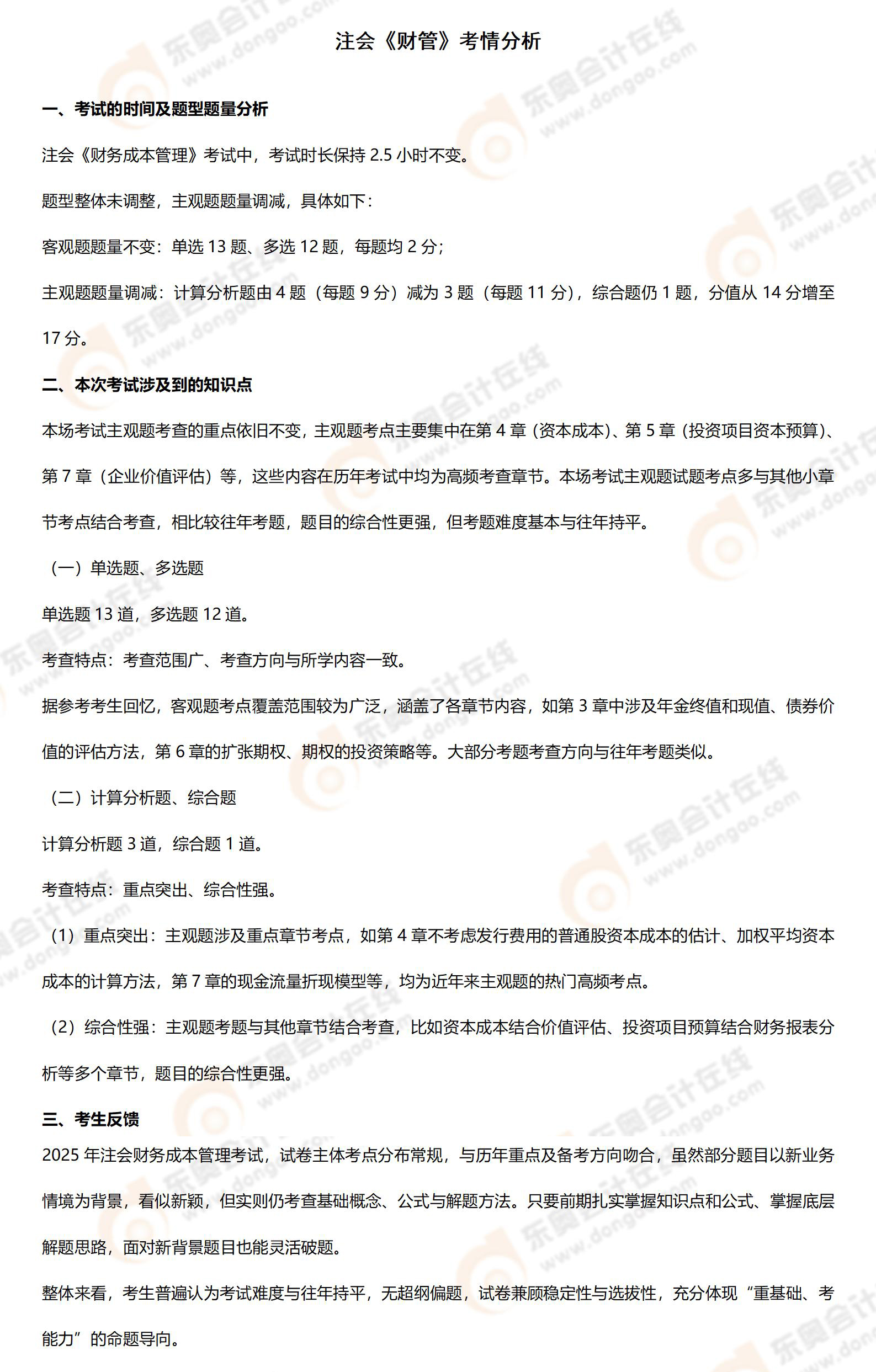 更多考點:2025年注冊會計師考試考題答案解析及考點總結(jié)(考生回憶版)