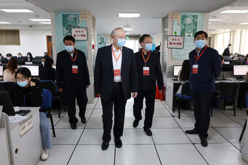 巡視期間,劉興云廳長(zhǎng)實(shí)地查看了考場(chǎng)內(nèi)考生考試情況,詳細(xì)了解疫情防控、考場(chǎng)設(shè)置、報(bào)考人數(shù)、實(shí)考人數(shù)、考點(diǎn)考務(wù)等情況,尤其對(duì)加強(qiáng)疫情防控措施進(jìn)行了重點(diǎn)關(guān)切。劉廳長(zhǎng)對(duì)歷年來注冊(cè)會(huì)計(jì)師考試考務(wù)管理工作給予充分肯定,對(duì)在疫情防控的特殊時(shí)期各高校克服困難大力支持并組織好本次考試表示感謝,對(duì)考試工作人員的辛勤工作表示慰問。強(qiáng)調(diào)要繼續(xù)精心組織、嚴(yán)格要求,認(rèn)真做好考試工作,確??荚嚢踩闶д`,要嚴(yán)肅考試紀(jì)律,堅(jiān)決維護(hù)考試公平公正,讓考生安心,讓社會(huì)滿意。
