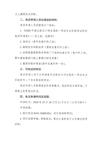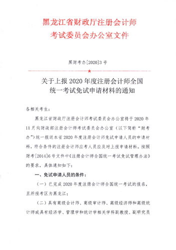 黑龍江省發(fā)布關(guān)于上報2020年度注會考試免試申請材料的通知