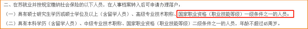 在蘇州市政府關(guān)于調(diào)整人才落戶相關(guān)政策的通知中表示:具有碩士研究生學(xué)歷或碩士學(xué)位及以上(含留學(xué)人員)、高級(jí)專業(yè)技術(shù)職稱、國(guó)家職業(yè)資格(職業(yè)技能等級(jí))一級(jí)條件之一的人員,在蘇就業(yè)并按規(guī)定繳納社會(huì)保險(xiǎn),在人事檔案轉(zhuǎn)入后可申請(qǐng)辦理落戶。而注冊(cè)會(huì)計(jì)師證書屬于國(guó)家職業(yè)資格一級(jí)證書。