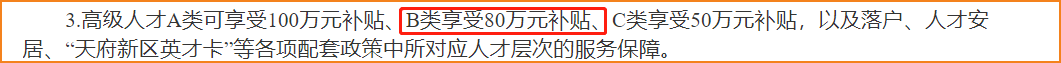 高級(jí)人才B類可享受80萬元補(bǔ)貼以及落戶、人才安居、“天府新區(qū)英才卡”等各項(xiàng)配套政策中所對(duì)應(yīng)人才層次的服務(wù)保障。注會(huì)報(bào)名入口 一鍵直達(dá)>>