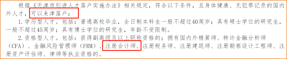 ● 天津注冊會(huì)計(jì)師可直接落戶 ●