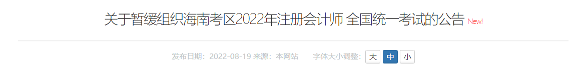 關(guān)于暫緩組織海南考區(qū)2022年注冊會計師全國統(tǒng)一考試的公告