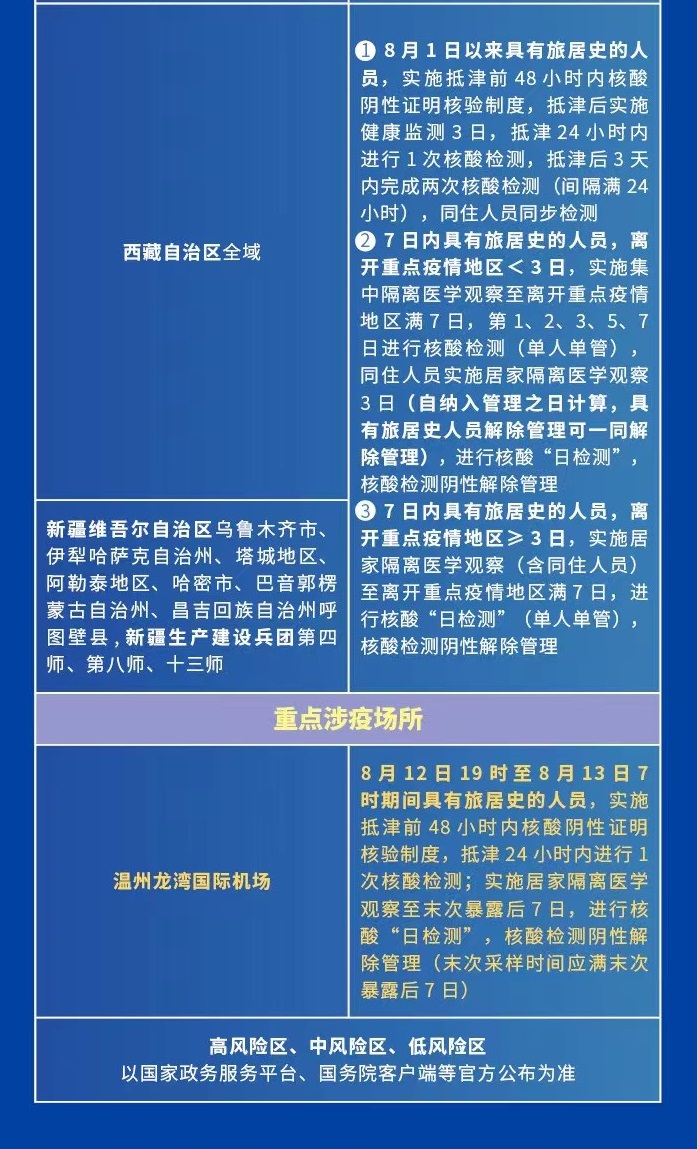 按照天津市最新排查管控政策,您須持48小時內(nèi)核酸檢測陰性證明、天津健康碼“綠碼”,在完成報備(“津心辦”app“來津報備”等方式)的前提下有序進津。抵津后,高、中、低風(fēng)險區(qū)、重點疫情區(qū)域及7日內(nèi)出現(xiàn)疫情地區(qū)的來(返)津人員按照現(xiàn)行政策執(zhí)行,其他地區(qū)人員于抵津24小時內(nèi)進行1次核酸檢測。請考生關(guān)注“津云”公眾號及時查詢更新信息,嚴(yán)格遵守來津、返津防控政策。