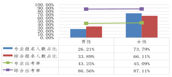 圖1 不同性別考生兩個(gè)階段考試報(bào)名人數(shù)占比、出考率情況