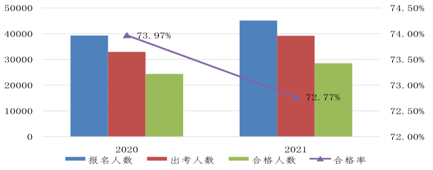 如果說(shuō)出考率的數(shù)據(jù)能夠反映出考生的考試意愿,那么合格率的數(shù)據(jù)就能夠說(shuō)明考生的決心,畢竟作為一個(gè)五年考期且難度不低的考試,能夠堅(jiān)持學(xué)習(xí)并通過(guò)足以反映出考生對(duì)考試的重視。