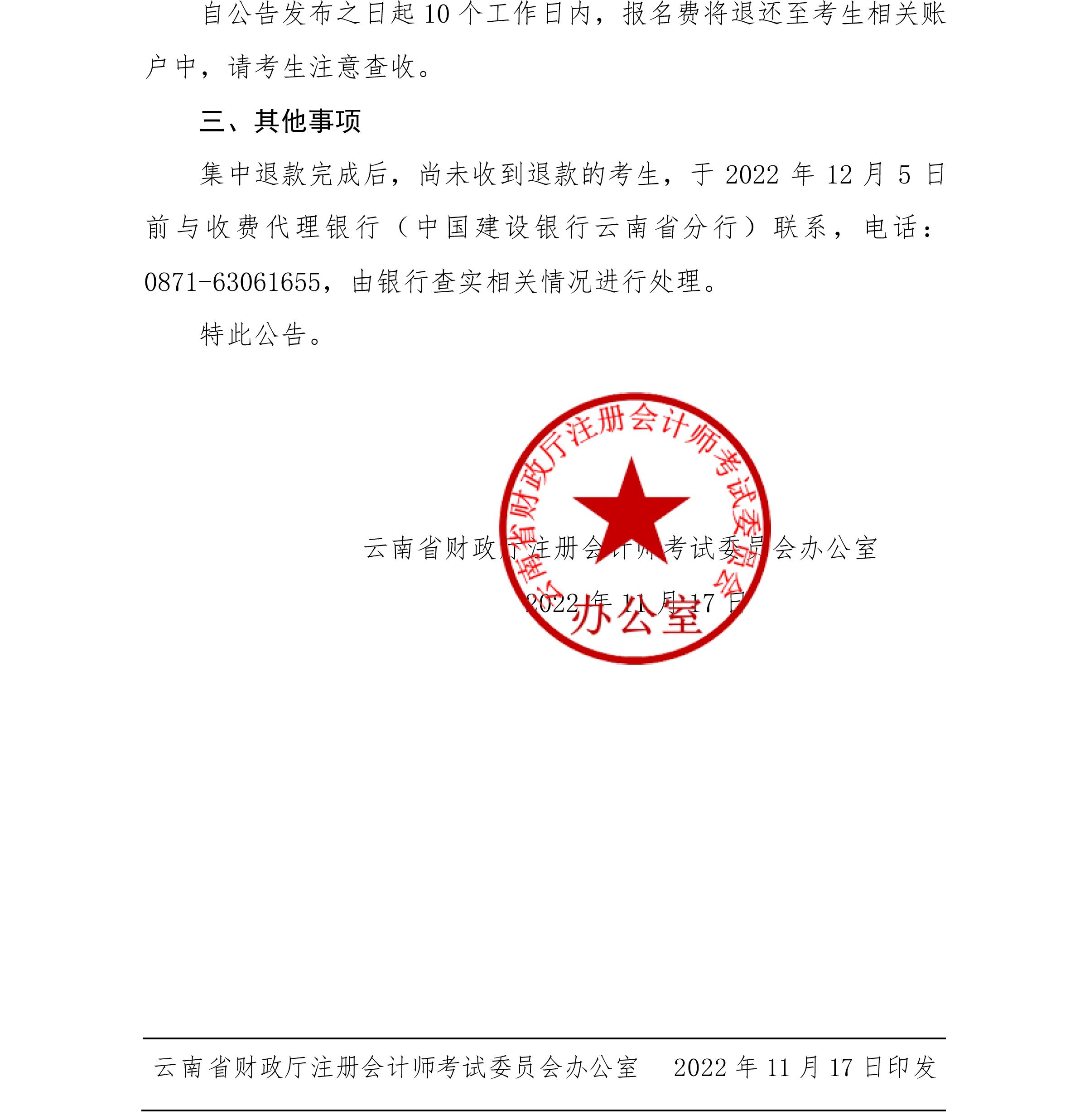 云南:關(guān)于2022年度注冊(cè)會(huì)計(jì)師全國(guó)統(tǒng)一考試退費(fèi)相關(guān)工作的公告