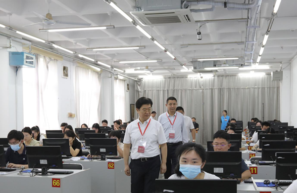 王元強副廳長一行在省注協(xié)指揮部通過視頻監(jiān)控系統(tǒng)巡視全省各考區(qū)考試考務(wù)工作情況,詳細了解各考場出考及考風(fēng)考紀情況等。隨后前往濟南考區(qū)現(xiàn)場督導(dǎo)巡視考試組織工作,對考點考務(wù)工作、考生服務(wù)保障、突發(fā)事件應(yīng)急處理預(yù)案等情況進行了巡視。王元強副廳長充分肯定了考試組織實施工作,并對全省各考點的大力支持和全力配合表示感謝。