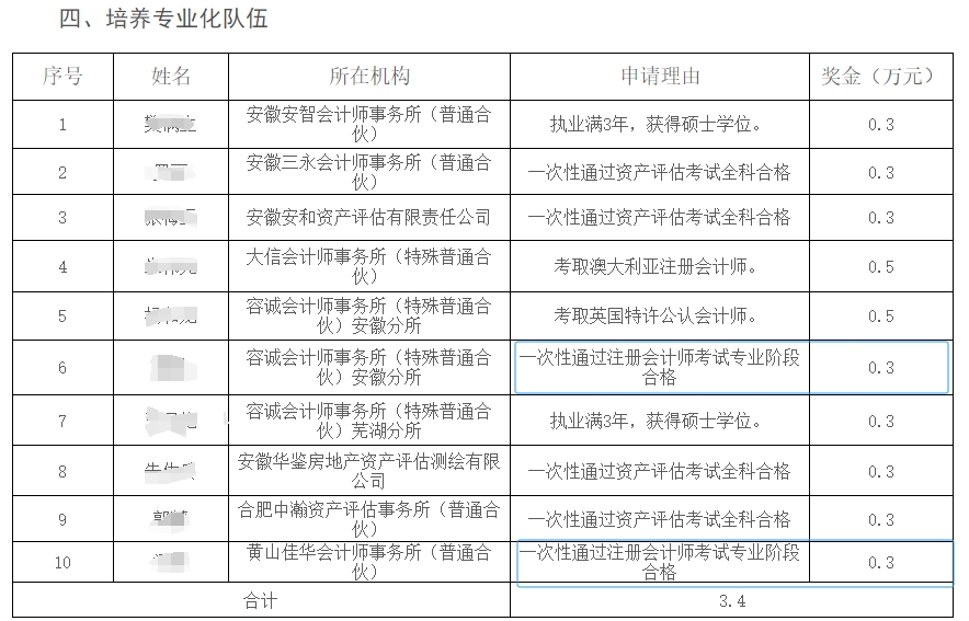 根據(jù)安徽省注冊(cè)會(huì)計(jì)師協(xié)會(huì)在2022年發(fā)布的《關(guān)于落實(shí)優(yōu)質(zhì)服務(wù)支持獎(jiǎng)勵(lì)政策的通知》可知,一次性通過(guò)注冊(cè)會(huì)計(jì)師專(zhuān)業(yè)階段考試的考生可以獲得3000元獎(jiǎng)勵(lì)?。獎(jiǎng)勵(lì)政策旨在鼓勵(lì)執(zhí)業(yè)人員進(jìn)一步提升專(zhuān)業(yè)能力,為行業(yè)發(fā)展做出貢獻(xiàn)。