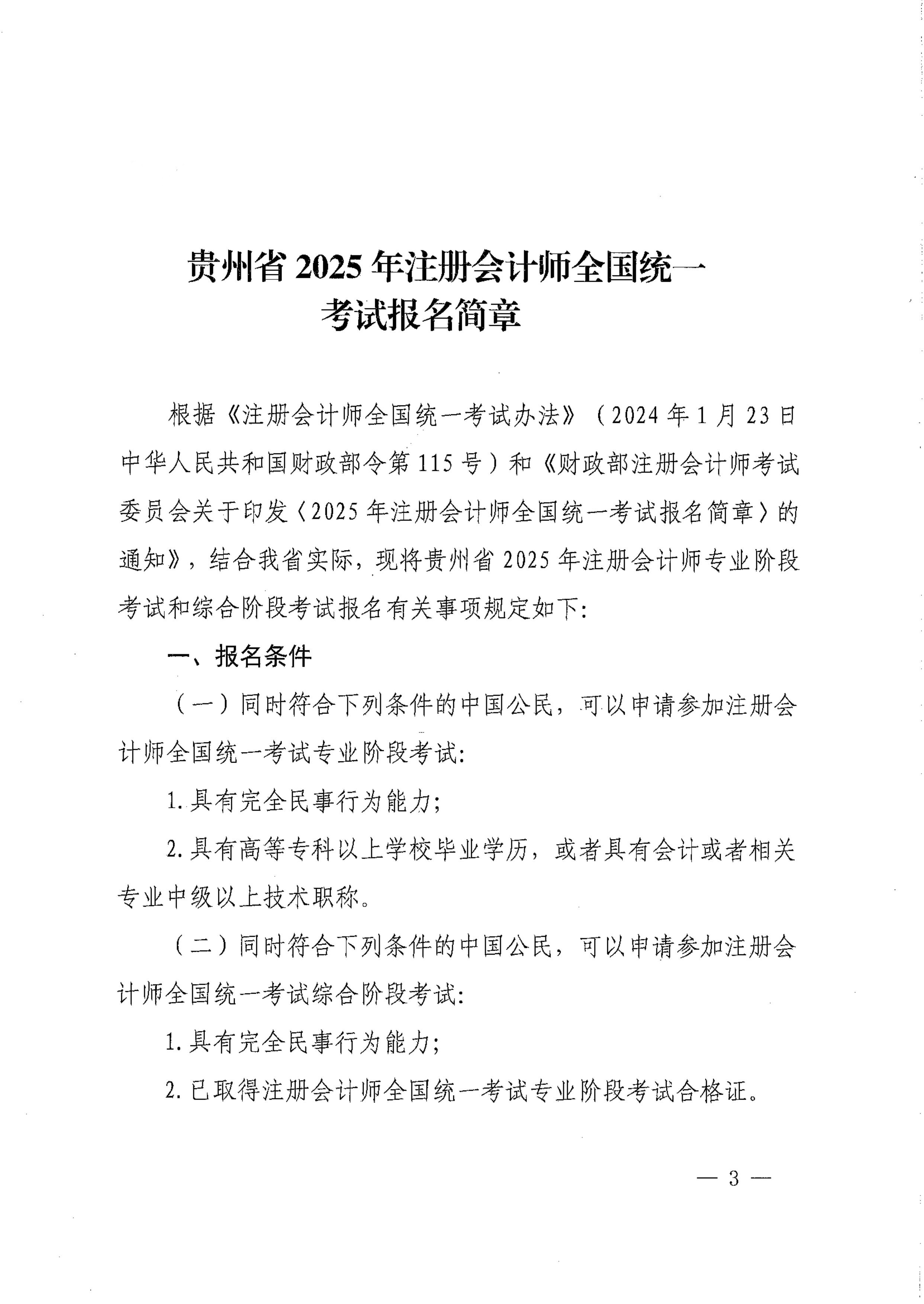 貴州省2025年注冊會計(jì)師全國統(tǒng)一考試報(bào)名簡章