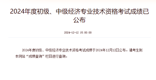 注意,上海2024年中級經(jīng)濟師成績查詢時間公布了