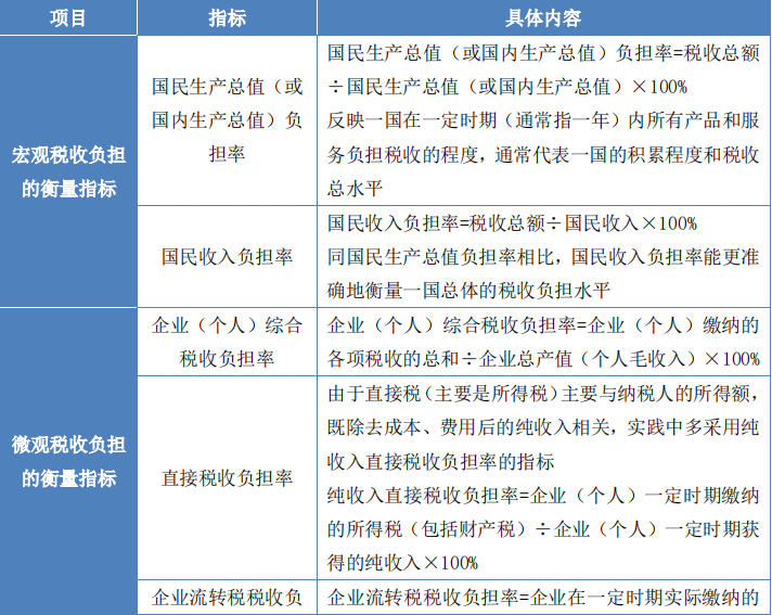 稅收負(fù)擔(dān)的衡量指標(biāo)
