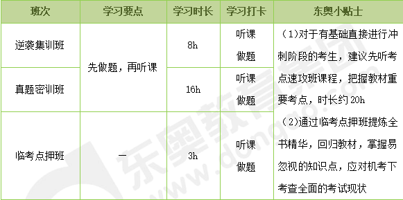 聽課任務(wù):逆襲集訓(xùn)班+真題密訓(xùn)班+臨考點(diǎn)押班等。