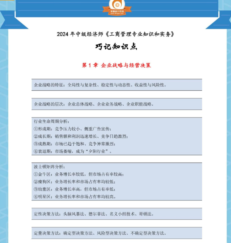 2024年中級經(jīng)濟師《工商管理》巧記知識點