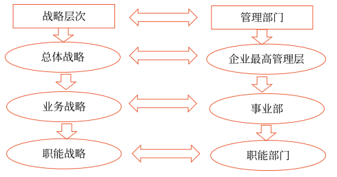 企業(yè)戰(zhàn)略一般可分為三個層次,分別是企業(yè)總體戰(zhàn)略、企業(yè)業(yè)務戰(zhàn)略和企業(yè)職能戰(zhàn)略。