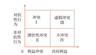 ②象限Ⅱ。潛伏性沖突是指存在利益沖突,但不存在對(duì)抗性行為。