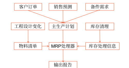 ①主生產(chǎn)計劃。又叫產(chǎn)品出產(chǎn)計劃,是最主要的輸入,表明企業(yè)向社會提供的最終產(chǎn)品數(shù)量是由客戶訂單、銷售預(yù)測和備件需求決定。