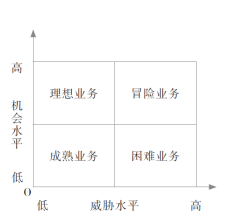 冒險業(yè)務(wù)(高機(jī)會、高威脅):機(jī)會與危險同在,利益與風(fēng)險并存,企業(yè)應(yīng)當(dāng)進(jìn)行全面分析,慎重抉擇,爭取利益 | |