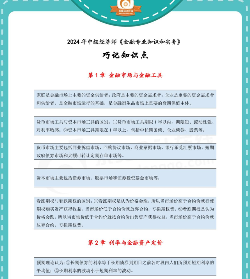 2024年中級(jí)經(jīng)濟(jì)師《金融》作為十大專業(yè)之一,考綱已經(jīng)發(fā)布,大部分同學(xué)已經(jīng)開始備考!為了讓同學(xué)們能更好的學(xué)習(xí),東奧會(huì)計(jì)團(tuán)隊(duì)的老師們?yōu)橥瑢W(xué)們總結(jié)了2024年中級(jí)經(jīng)濟(jì)師《金融》巧記知識(shí)點(diǎn),建議同學(xué)們收藏起來慢慢學(xué)。