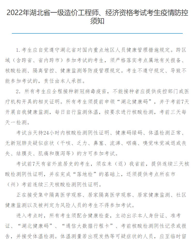湖北2022年中級經(jīng)濟師考試疫情防控要求發(fā)布了