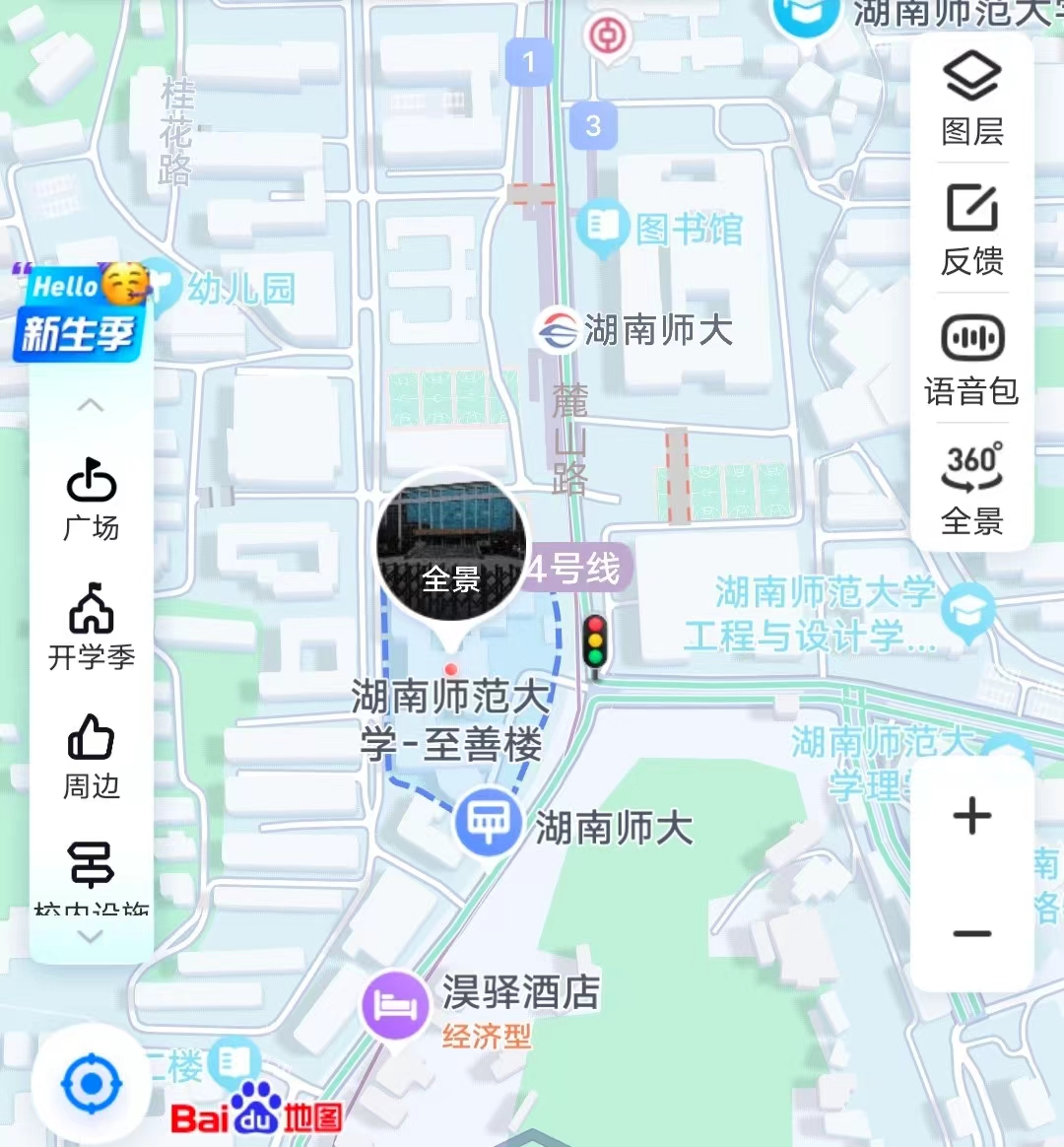 備注:地鐵4號(hào)線湖南師大站,至善樓距2號(hào)口約150米