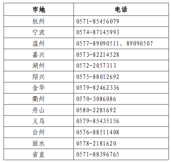 各考區(qū)(省直、各設(shè)區(qū)市及義烏市) 人事考試機構(gòu)咨詢電話