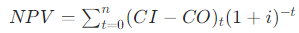 凈現(xiàn)值(NPV)是通過把項目計算期內(nèi)各年的凈現(xiàn)金流量,按照設定的折現(xiàn)率(i)折現(xiàn)到建設期初的現(xiàn)值之和,計算公式為:NPV=∑t=0n(CI?CO)t(1+i)?t,這里 CI表示現(xiàn)金流入,CO表示現(xiàn)金流出,(CI?CO)t 就是第 t 年的凈現(xiàn)金流量,n 為項目計算期。