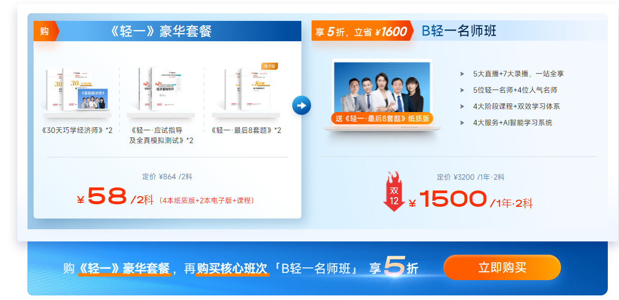 購(gòu)《輕松過(guò)關(guān)?1》套餐享B班5折優(yōu)惠,1年2科領(lǐng)券再減100!