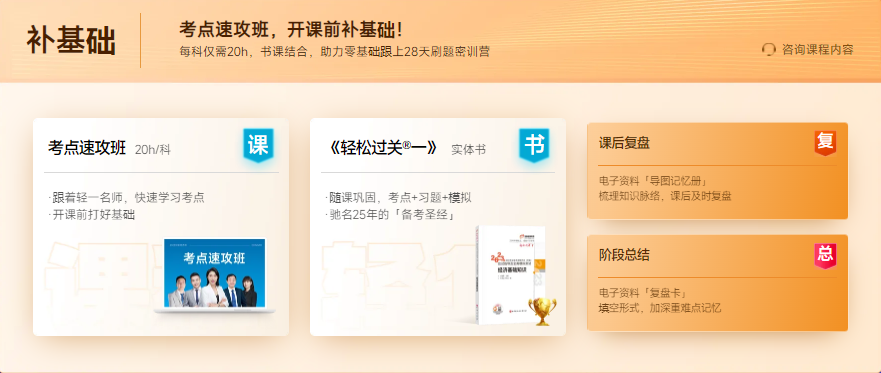 每科僅需20h,開課前補(bǔ)基礎(chǔ),助力零基礎(chǔ)跟上28天刷題密訓(xùn)營