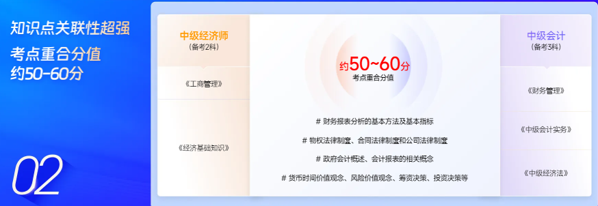 原因二:中級(jí)經(jīng)濟(jì)師與中級(jí)會(huì)計(jì)師考點(diǎn)重合分值約50~60分