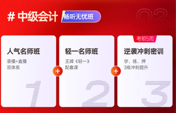 班次三:黃金備考班+沖刺密訓(xùn)=雙證暢聽班(雙中級(jí)全課程首選)含雙中級(jí)《輕一》圖書