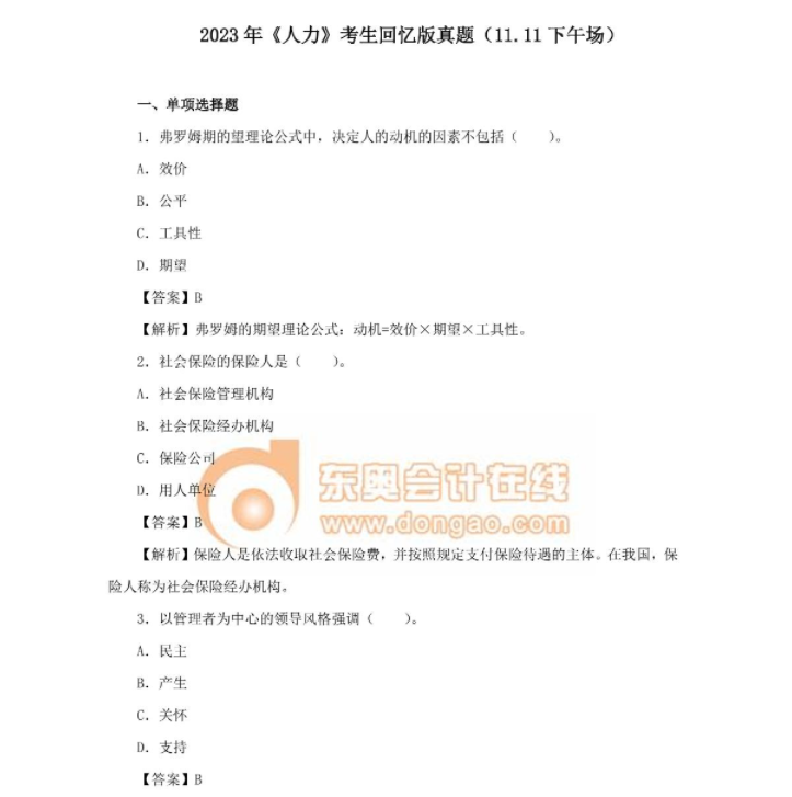 2023年中級(jí)經(jīng)濟(jì)師《人力資源》回憶版真題及答案解析(11日下午)