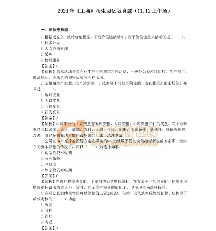 2023年中級經(jīng)濟(jì)師《工商管理》回憶版真題(11月12日上午)