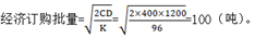 企業(yè)為了降低庫(kù)存成本,采用固定訂購(gòu)量系統(tǒng)控制庫(kù)存,某種原材料的年需求量為1200噸,單次訂貨成本為400元,每年每噸的持有成本為96元,則該種原材料的經(jīng)濟(jì)訂購(gòu)批量為( )噸。(根據(jù)真題改編)