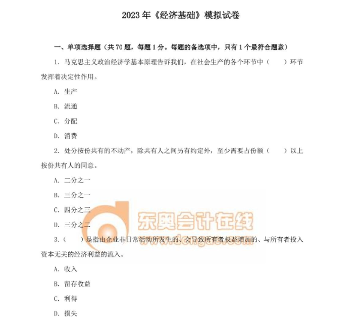 ·資料名稱:2023年中級(jí)經(jīng)濟(jì)師考試模擬試卷