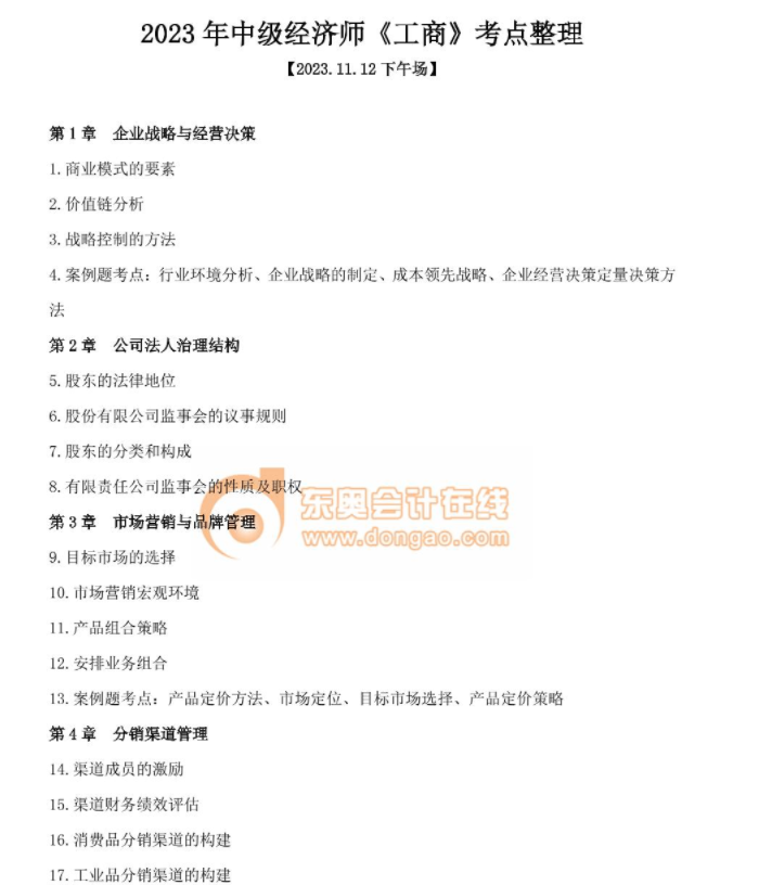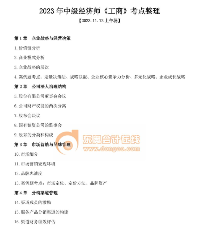 2023年中級經(jīng)濟(jì)師考試結(jié)束后,同學(xué)們通過真題回憶版對于考題的解析以及考試大致情況有了一定的了解,那么下面東奧會計在線的老師們針對考題中出現(xiàn)的考點(diǎn),為同學(xué)們作出整理版,通過考點(diǎn)整理可觀察哪些是比較高頻的知識點(diǎn)等,下載入口如下。