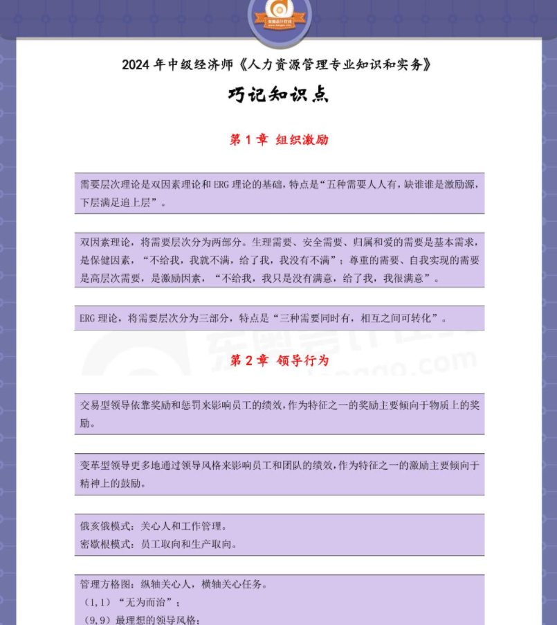 2024年中級(jí)經(jīng)濟(jì)師《人力資源》巧記知識(shí)點(diǎn)