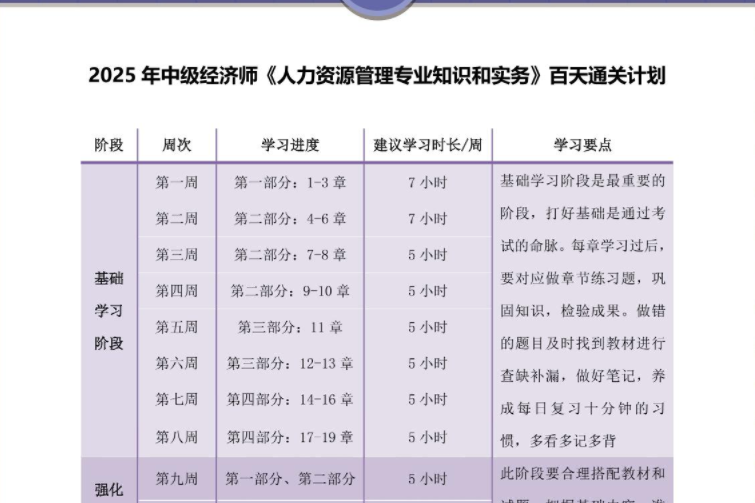 2025年中級(jí)經(jīng)濟(jì)師《人力資源》百天通關(guān)計(jì)劃表!