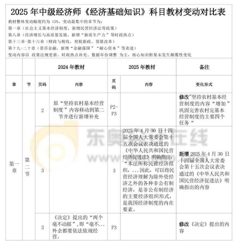 2025年中級經(jīng)濟(jì)師《經(jīng)濟(jì)基礎(chǔ)》新教材變化